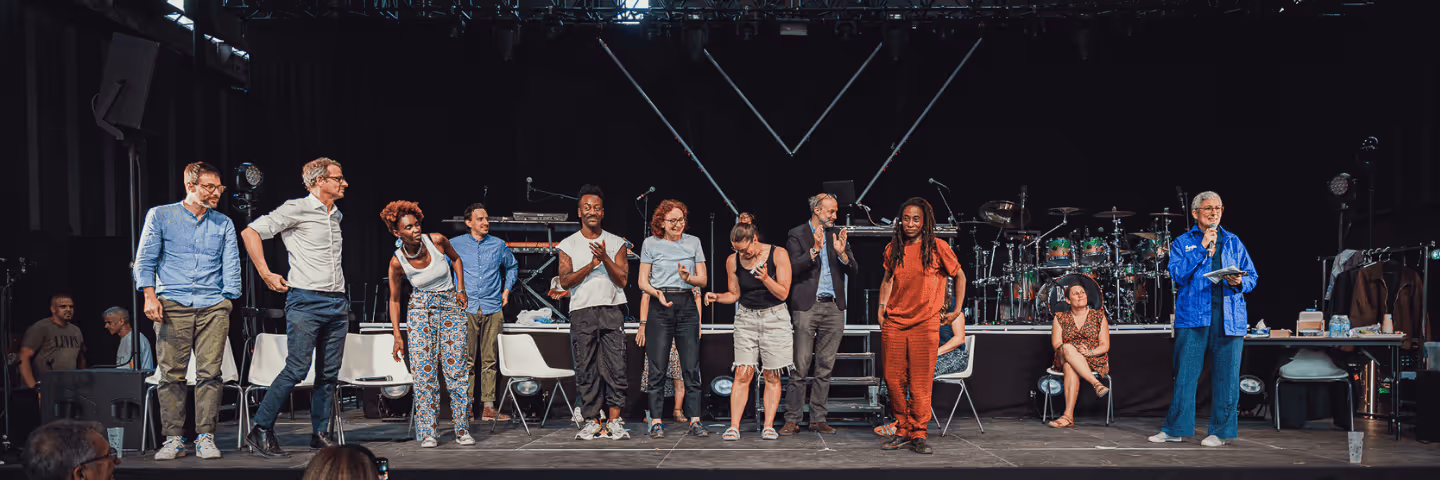 Pour parler alimentation, justice sociale, inclusion et écologie, il fallait une line-up à la hauteur. On l’avait La F Compagnie a ouvert le bal avec une performance où, après avoir entendu toutes les voix, le public a dû voter pour ou contre l'installation d'un élevage de poulets fermiers dans la commune. Ce dilemme a laissé place au vrai-faux débat orchestré par l'humoriste Shirley Souagnon, avec Rokhaya Diallo, Grégory Cuilleron, Boris Tavernier, Mathieu Mazin, Caroline Brand et Diane Dupré la Tour.